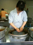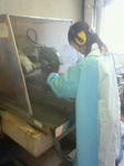 カッターで切り出した岩石チップを研いて、プレパラートに張りつけて削っていきます。